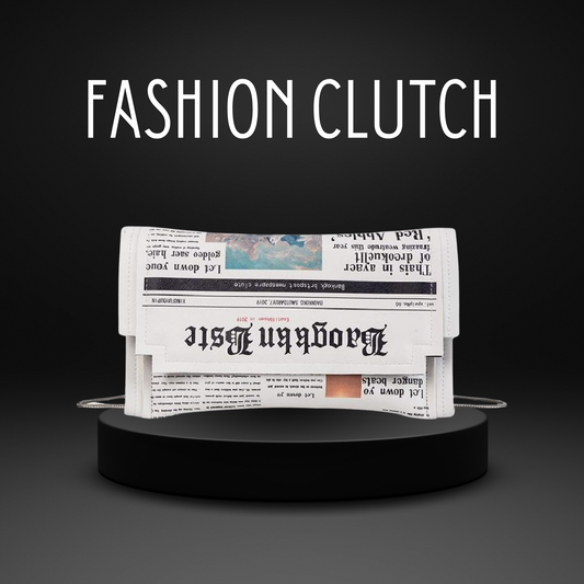 Vintage Newsprint Fashion Clutch | Chic Crossbody Shoulder Purse | Soft PU Leather | Trendy Handbag for Women