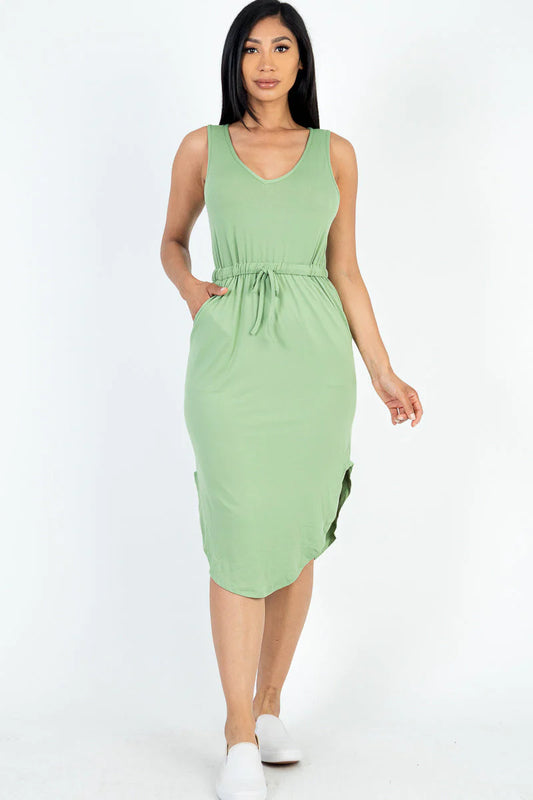 Sleek Summer Midi | Effortless Sleeveless Dress with Adjustable Drawstring Waist