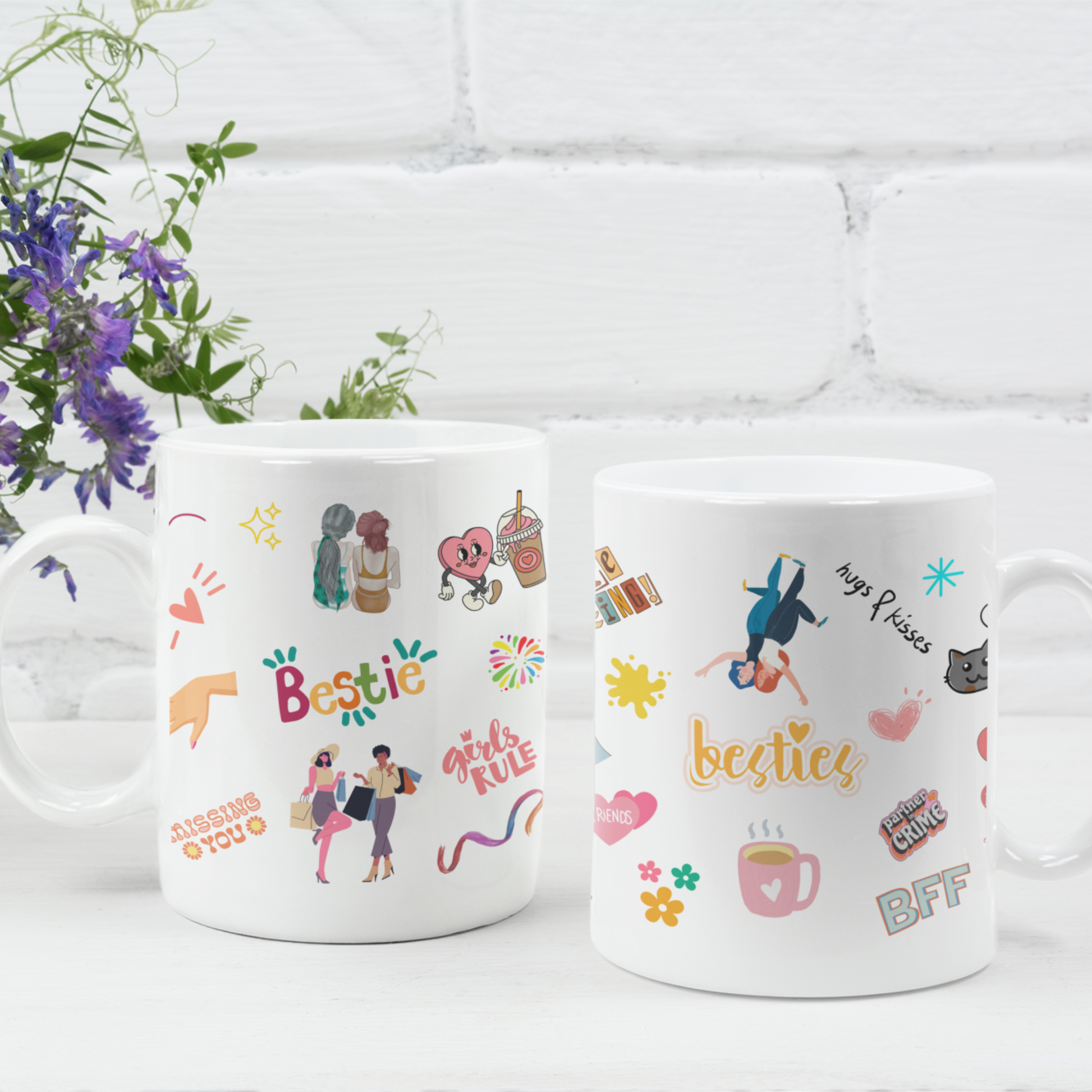 Brighten Your Bestie’s Day with Our Vibrant Ceramic Mugs. Celebrate your friendship with our top-quality Bestie Mugs, designed to add a burst of color and joy to your daily coffee or tea moments. These mugs are not just drinkware; they’re a token of your bond, perfect for your partner in crime, soul sister, or best friend.