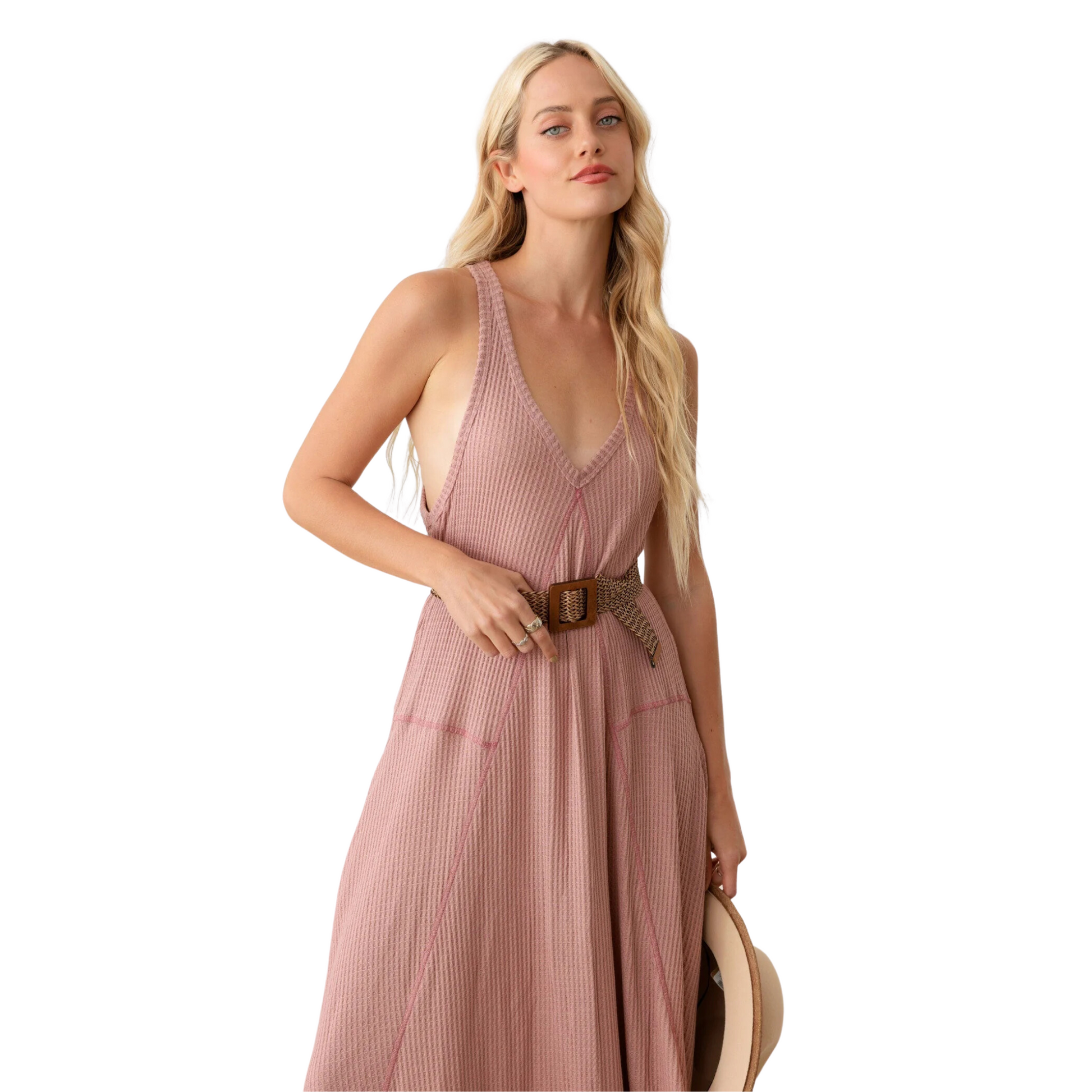 Embrace the free-spirited charm of our Western V-Neckline Waffle Hip Pocket Maxi Dress. This dress is a celebration of bohemian elegance and practical design, making it an ideal choice for those who value both style and convenience.