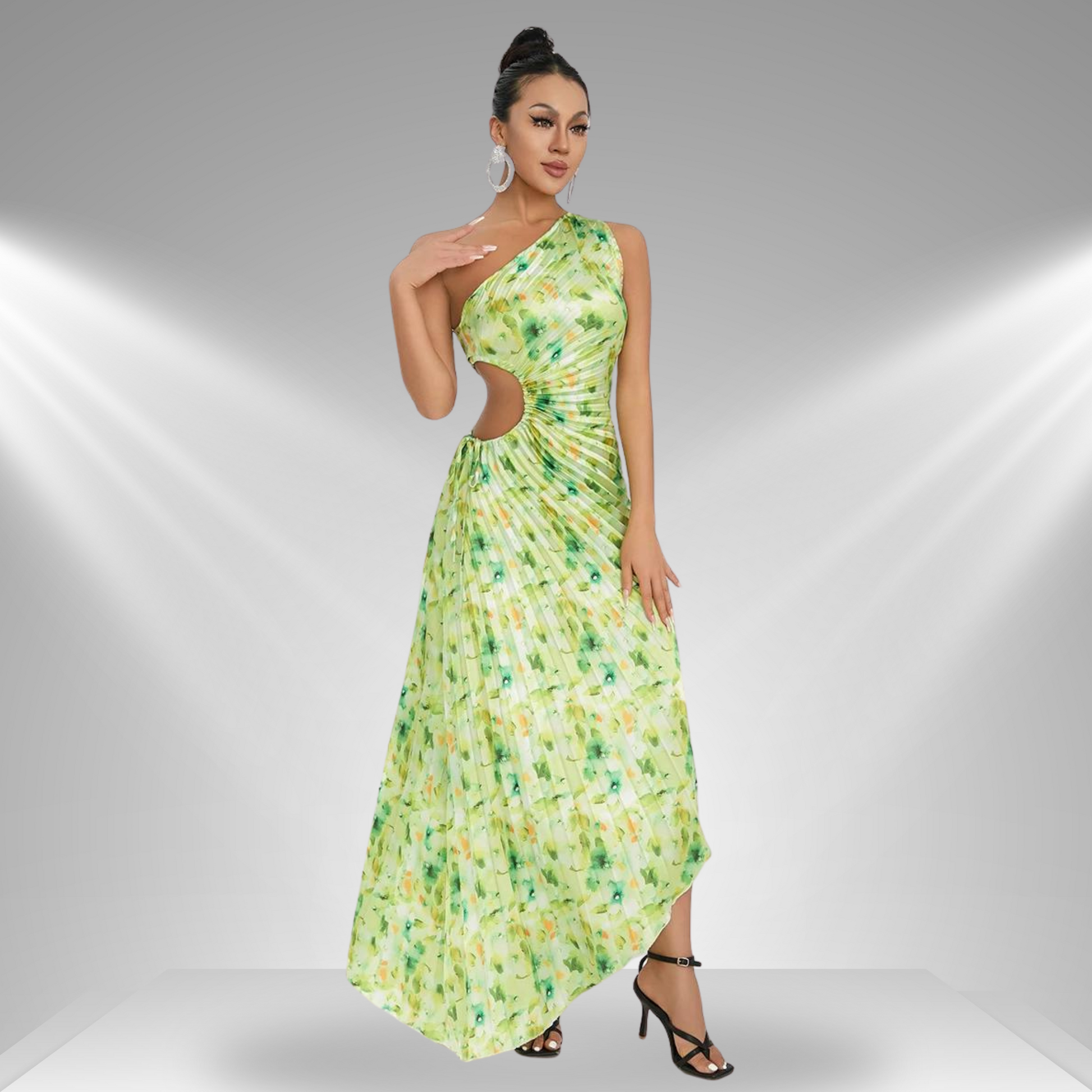 Step into elegance with our Elegant Asymmetrical Maxi Dress, the perfect blend of sophistication and style. This exquisite one-shoulder sleeveless gown is designed to accentuate your silhouette, making it an ideal choice for any evening event. The pleated detailing adds a touch of grace, while the hollowed irregular hem introduces a modern twist to the classic maxi dress.