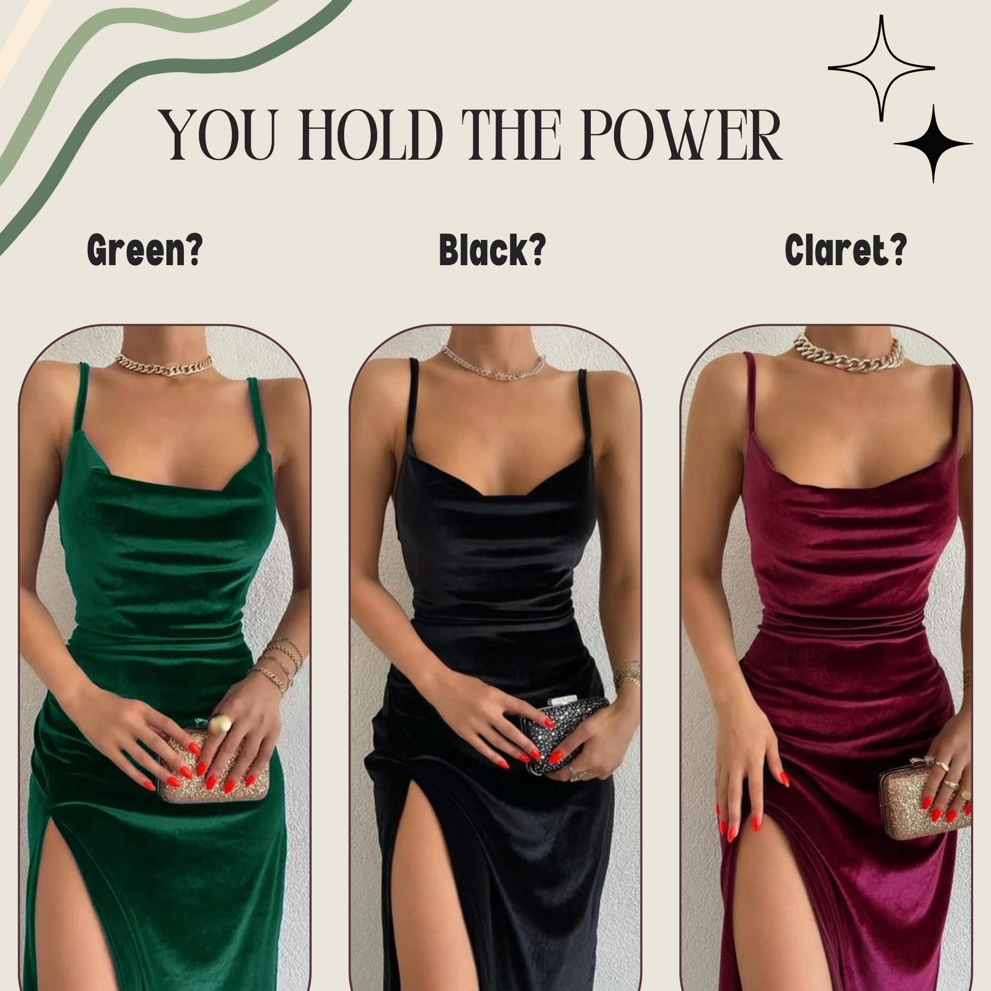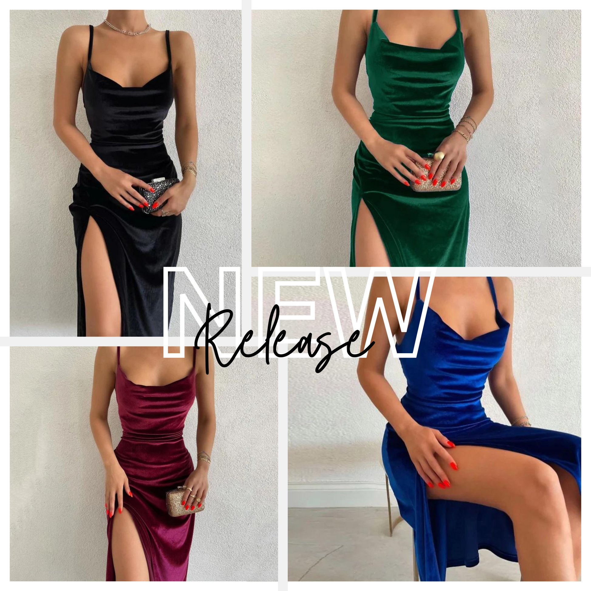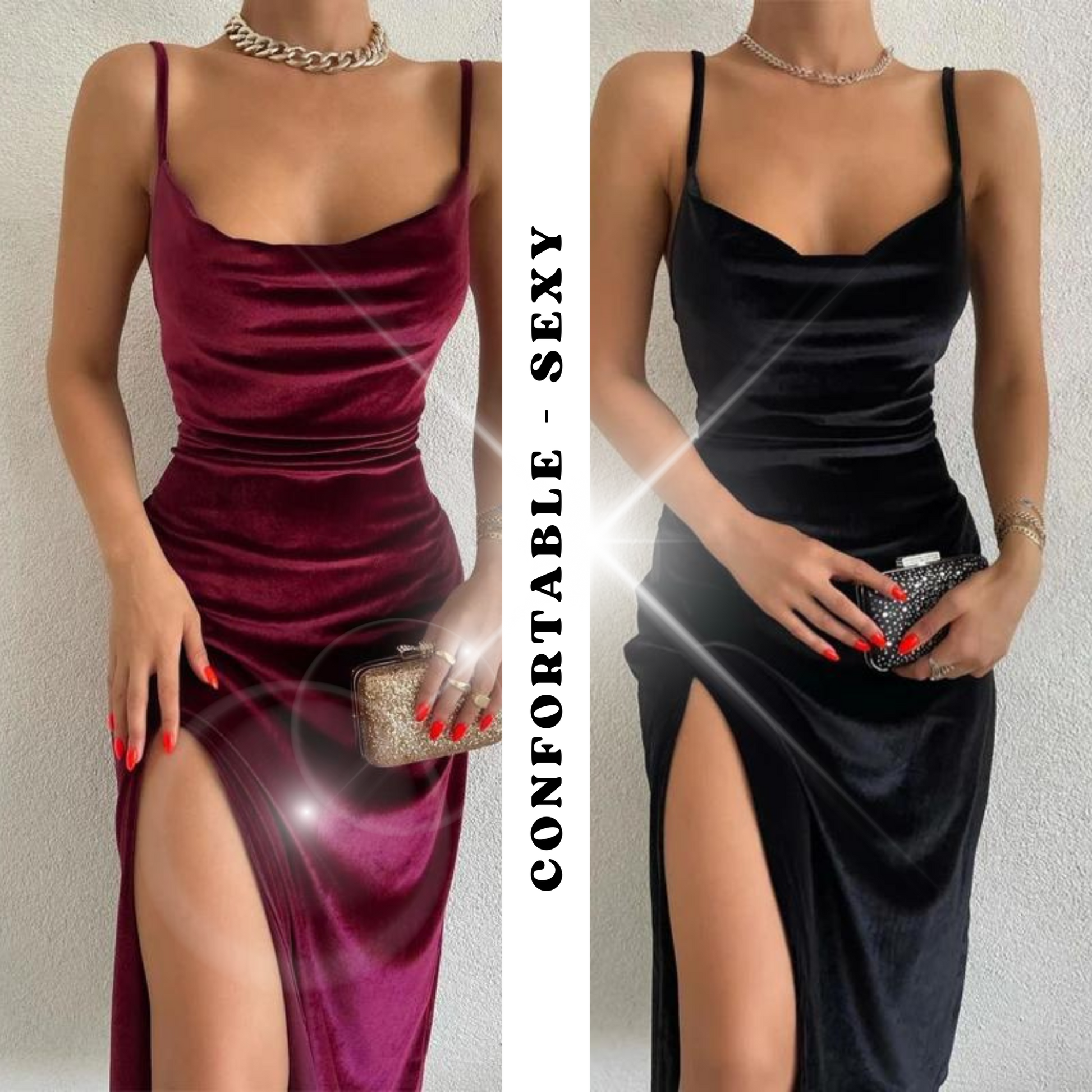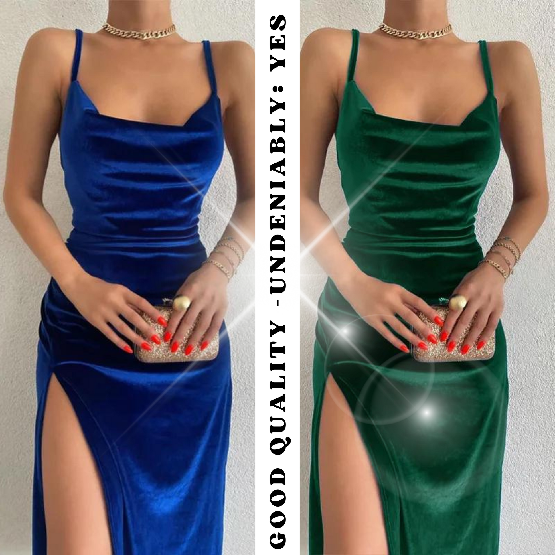 Sleveless High Vent - Cocktail Party Maxi Dress - Velvet Prom Dress