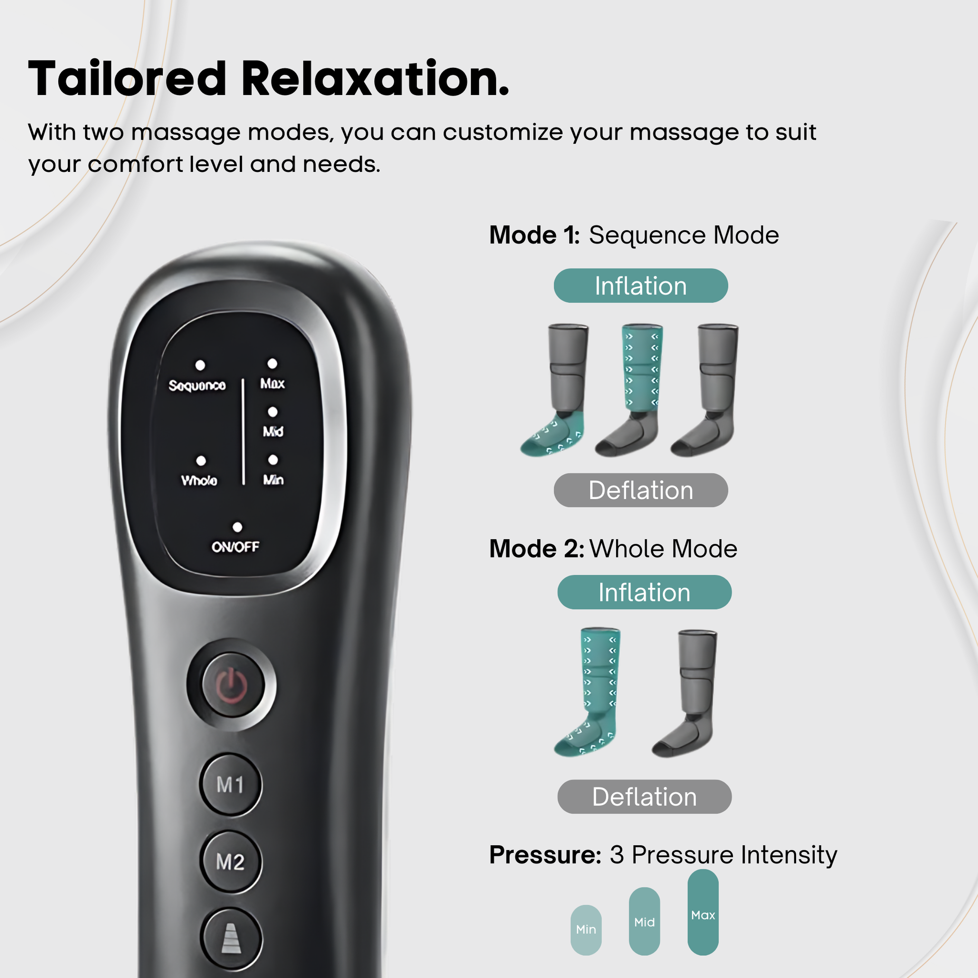 Customize your relaxation with two distinct massage modes. Whether you need gentle relief or a more intense massage, our leg massager adjusts to meet your needs, providing a tailored experience every time.