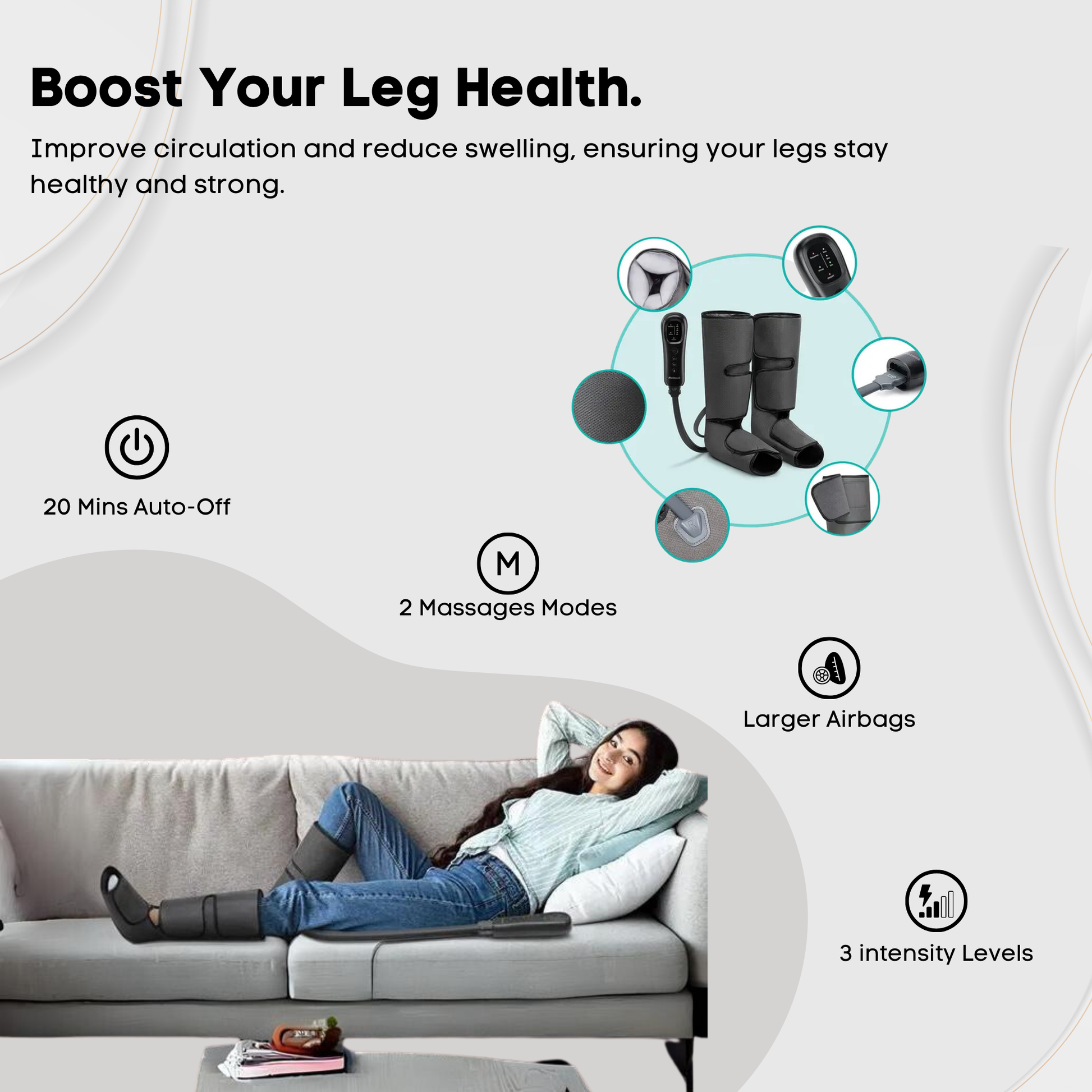 Enhance your leg health with improved circulation. The rhythmic air compression boosts blood flow, promoting relaxation and overall leg well-being, making it perfect for daily use.