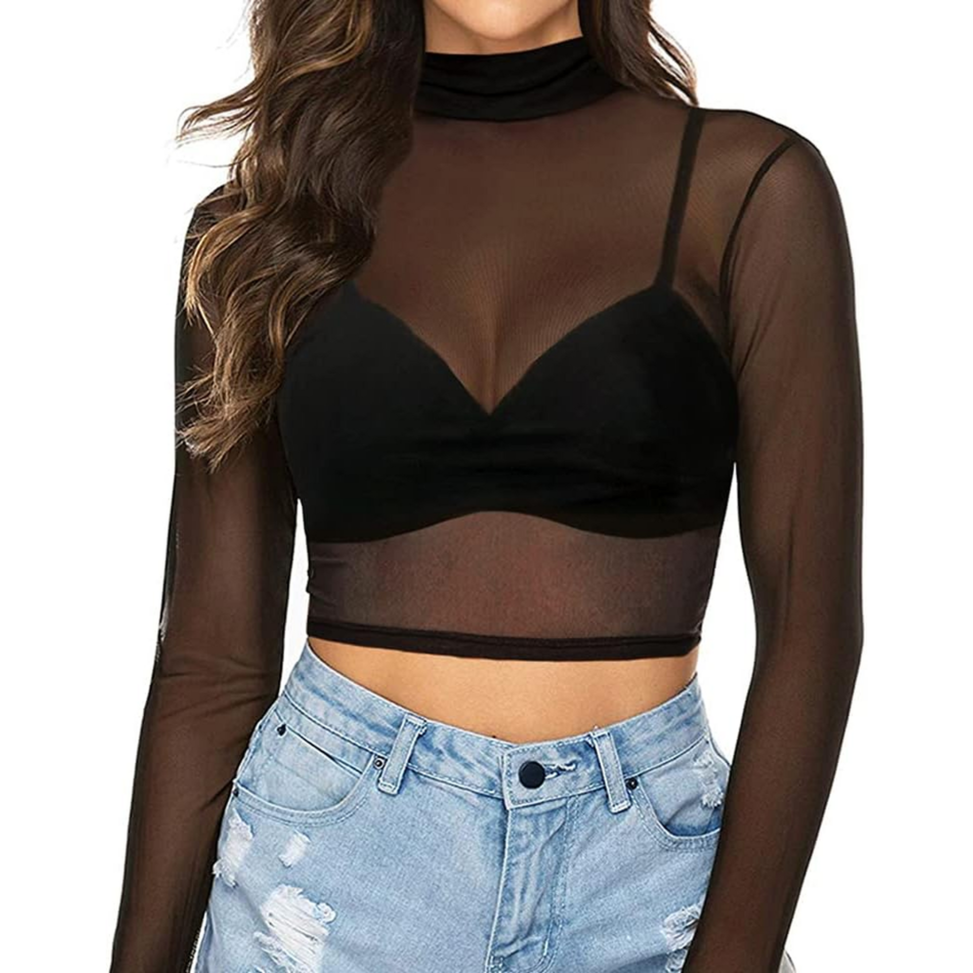 Package Content: 1 * Sheer Mesh Crop Top (Note: Bra not included).