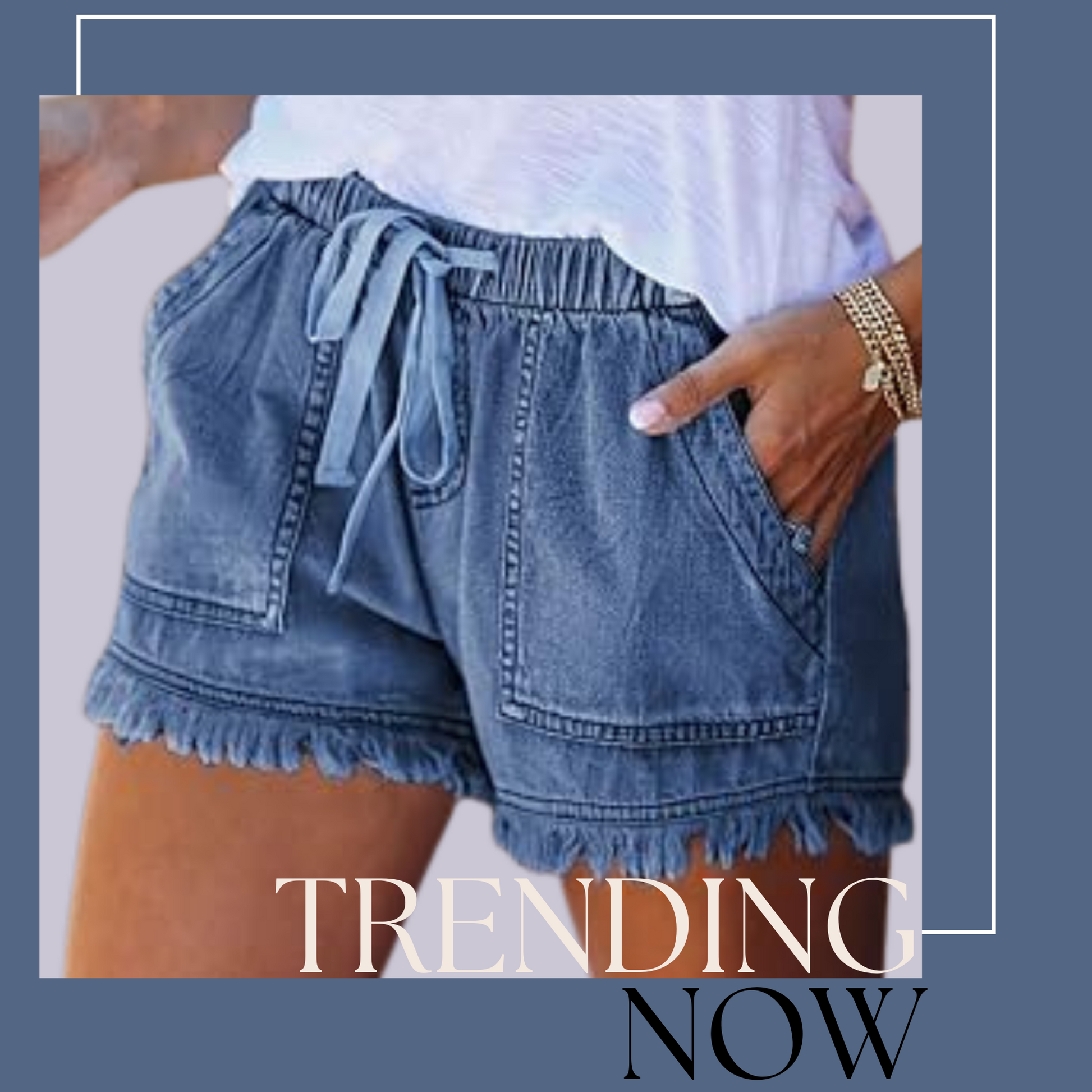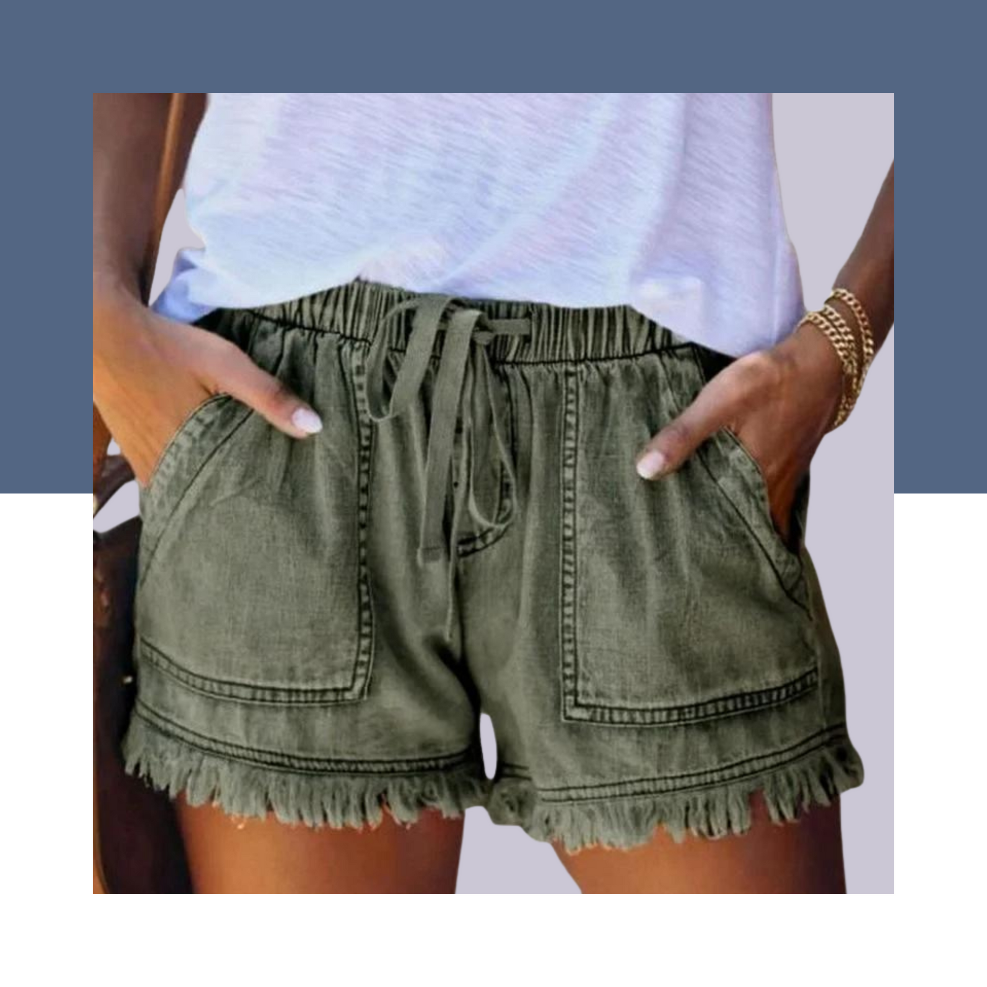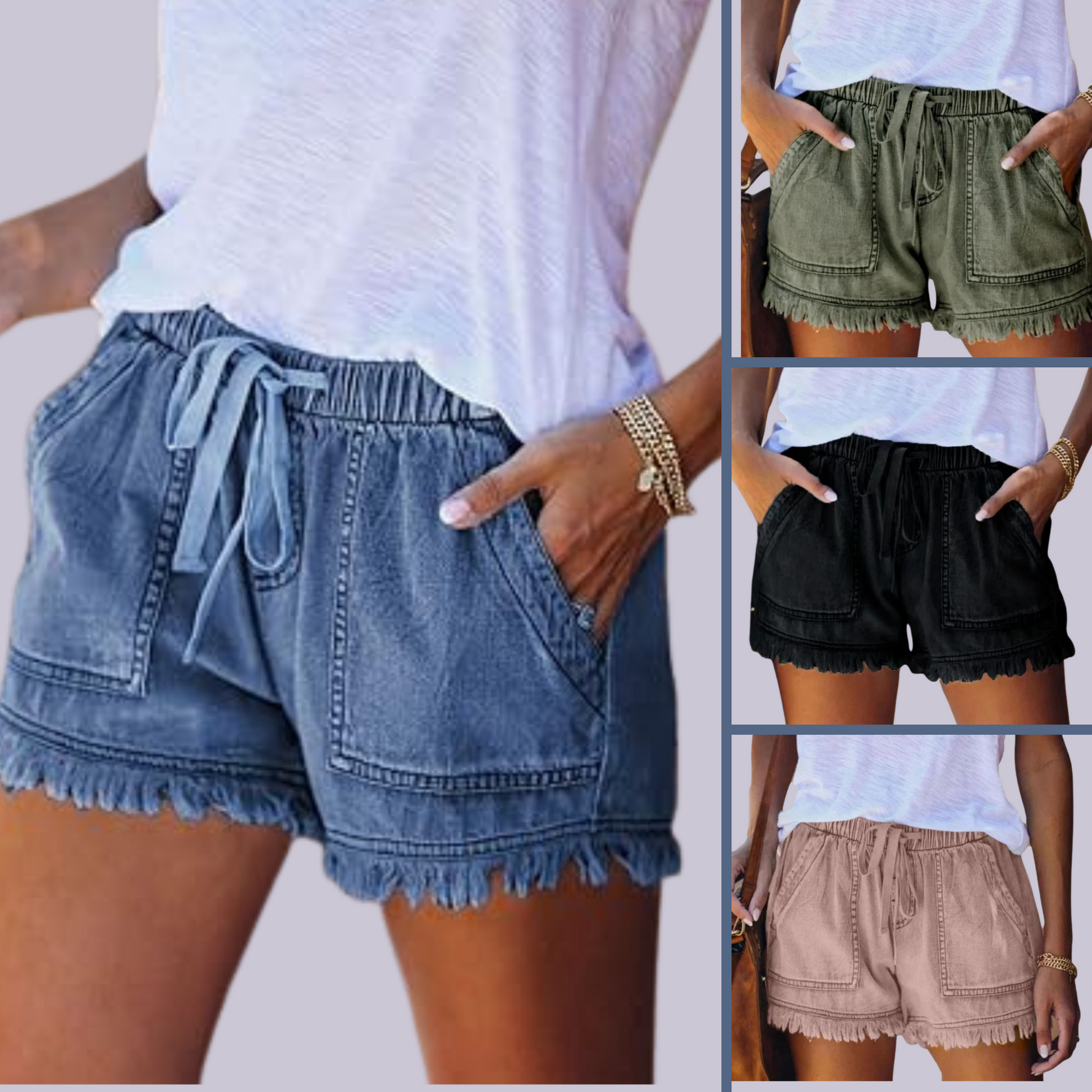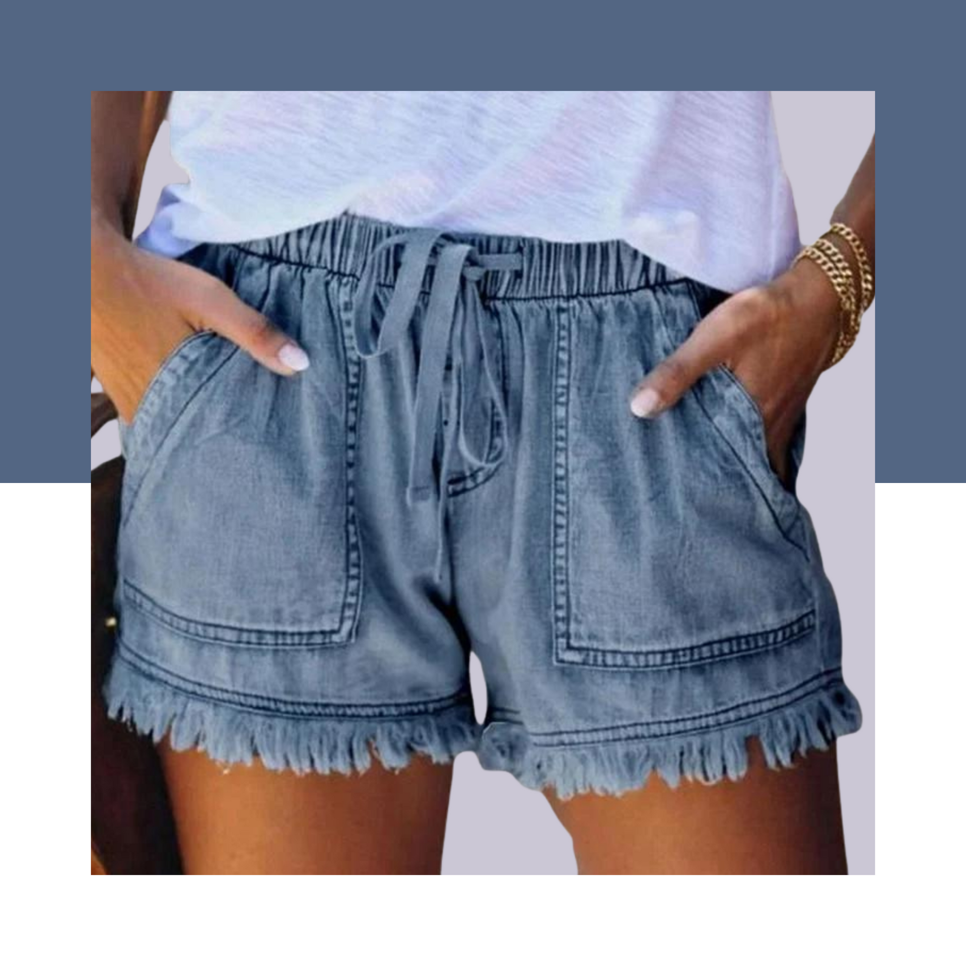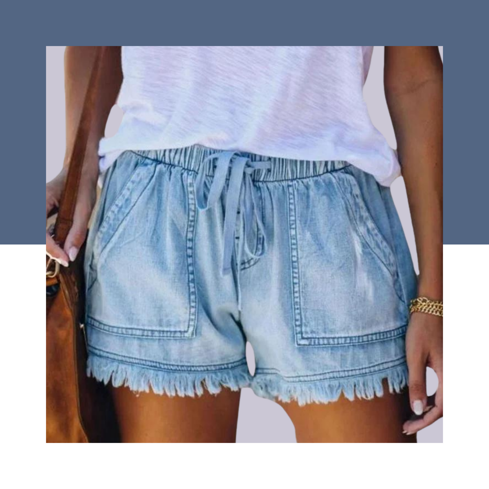 Women Summer Denim Casual Shorts Elastic with Pockets
