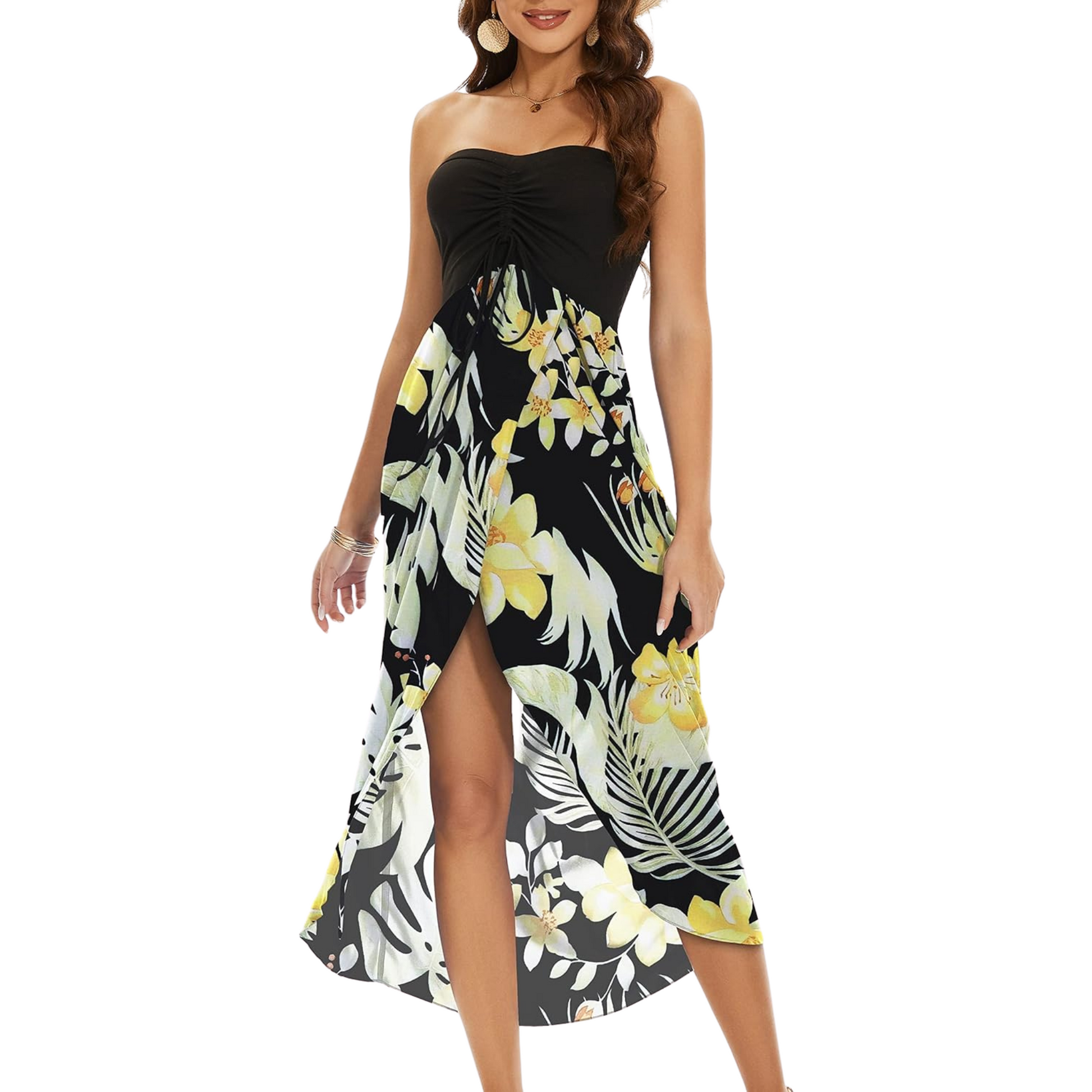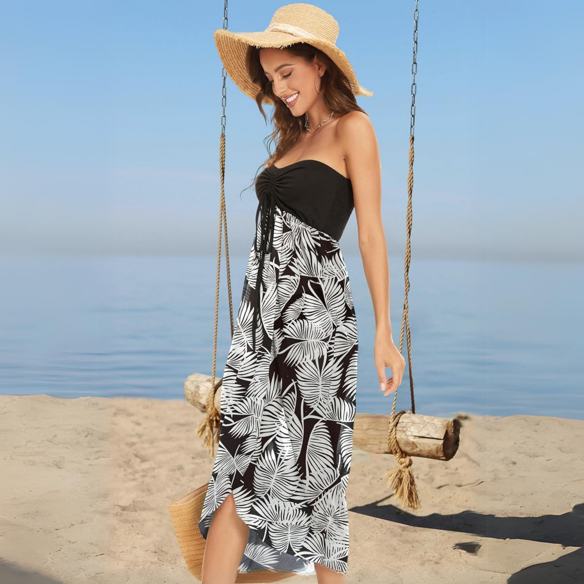 Women'S Beach Dress Summer Maxi Sundress Strapless Hawaiian Cover Ups Asymmetrical Wrap Dresses